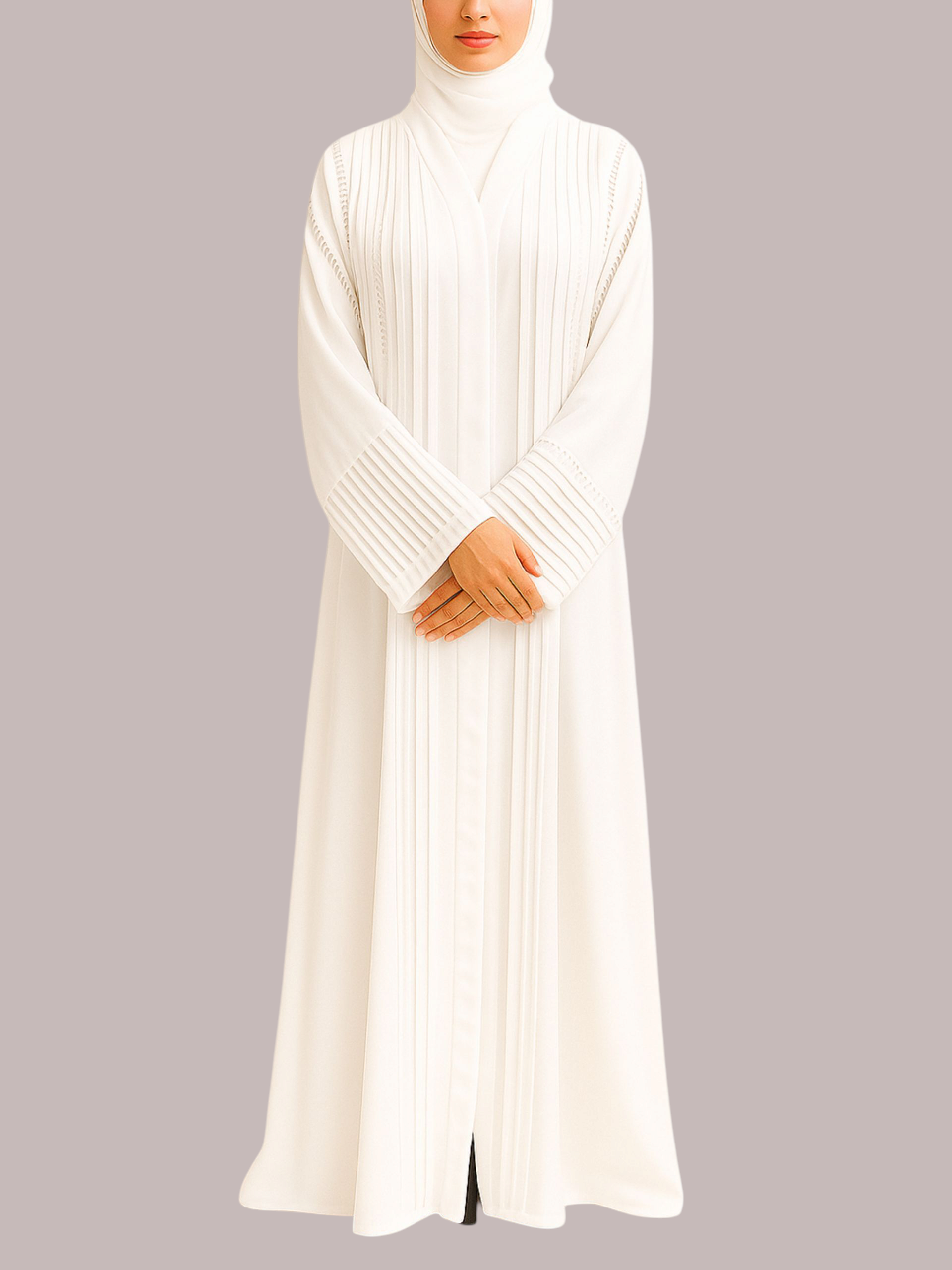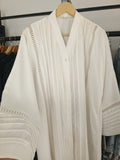 Indulge in pure elegance with this exquisite abaya, adorned with intricate white lace from top to bottom. Designed for those who appreciate timeless sophistication, this piece drapes beautifully, offering a dreamy, ethereal look. Perfect for special occasions, weddings, or a refined everyday style, this abaya is a true statement of grace and femininity.